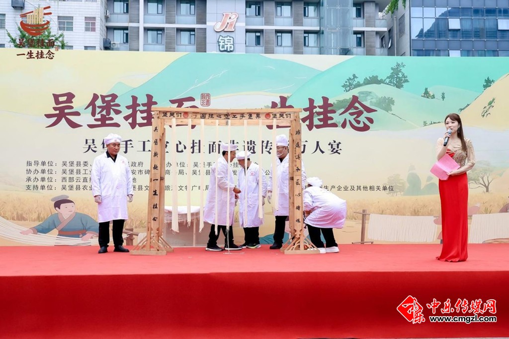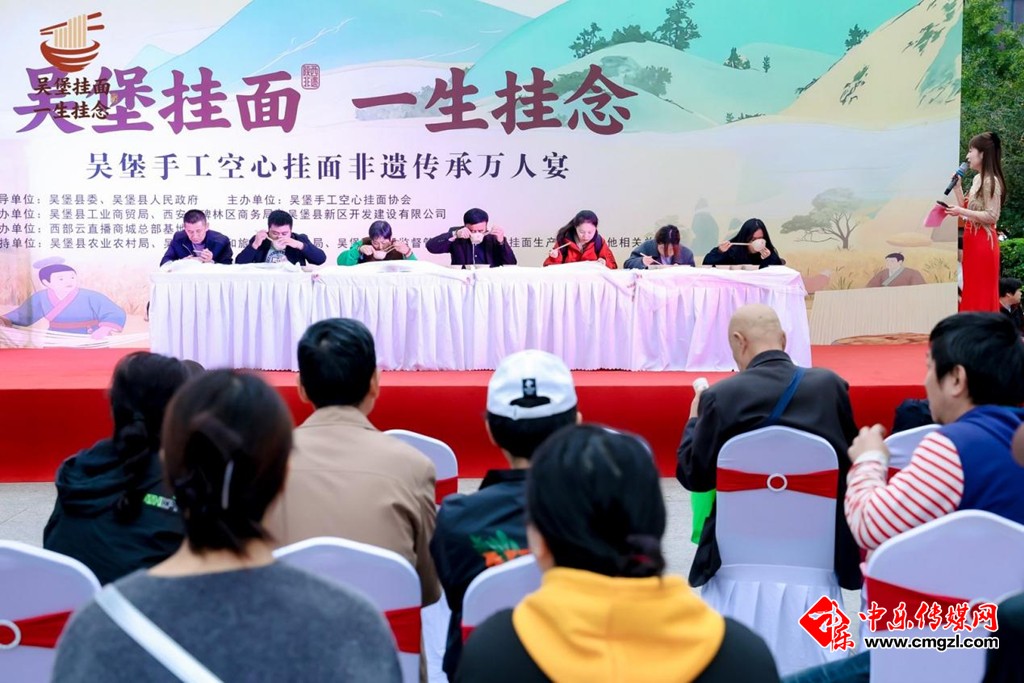 中乐融媒网讯 “吴堡挂面 一生挂念”10月18日,西安市钟楼兴正元广场人声鼎沸、面香四溢,吴堡非遗挂面宴在此热闹开席。中共吴堡县委副书记魏国,县政府党组成员王德烽,吴堡县工业商贸局局长高利斌,吴堡县工业园区管委会副主任王海军,碑林区商务局局长张彤,碑林区文化旅游局副局长杨宁、碑林区网信办副主任田静、碑林区工会副主席冯亮等两地领导,与西安市直播电商协会会长杨森然、西部云直播商城总部基地总裁雷丽君出席活动,数千市民游客齐聚一堂,共赴这场美食与文化的狂欢盛宴。